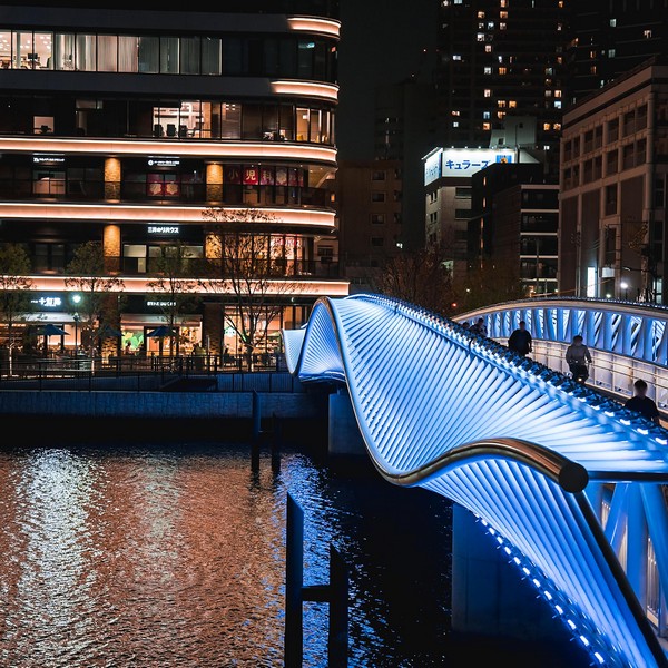 Tokyo’s waterfront has a new gesture of movement and light. Reimei Kobashi, the pedestrian bridge linking Kachidoki Station with Harumi 3-chome, is more than a piece of infrastructure — it’s a sculptural response to the rhythms of the Asashio Canal.